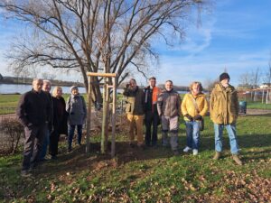 Das Bunte Café Niederkassel pflanzt Kugelahorn am Mondorfer Spielplatz